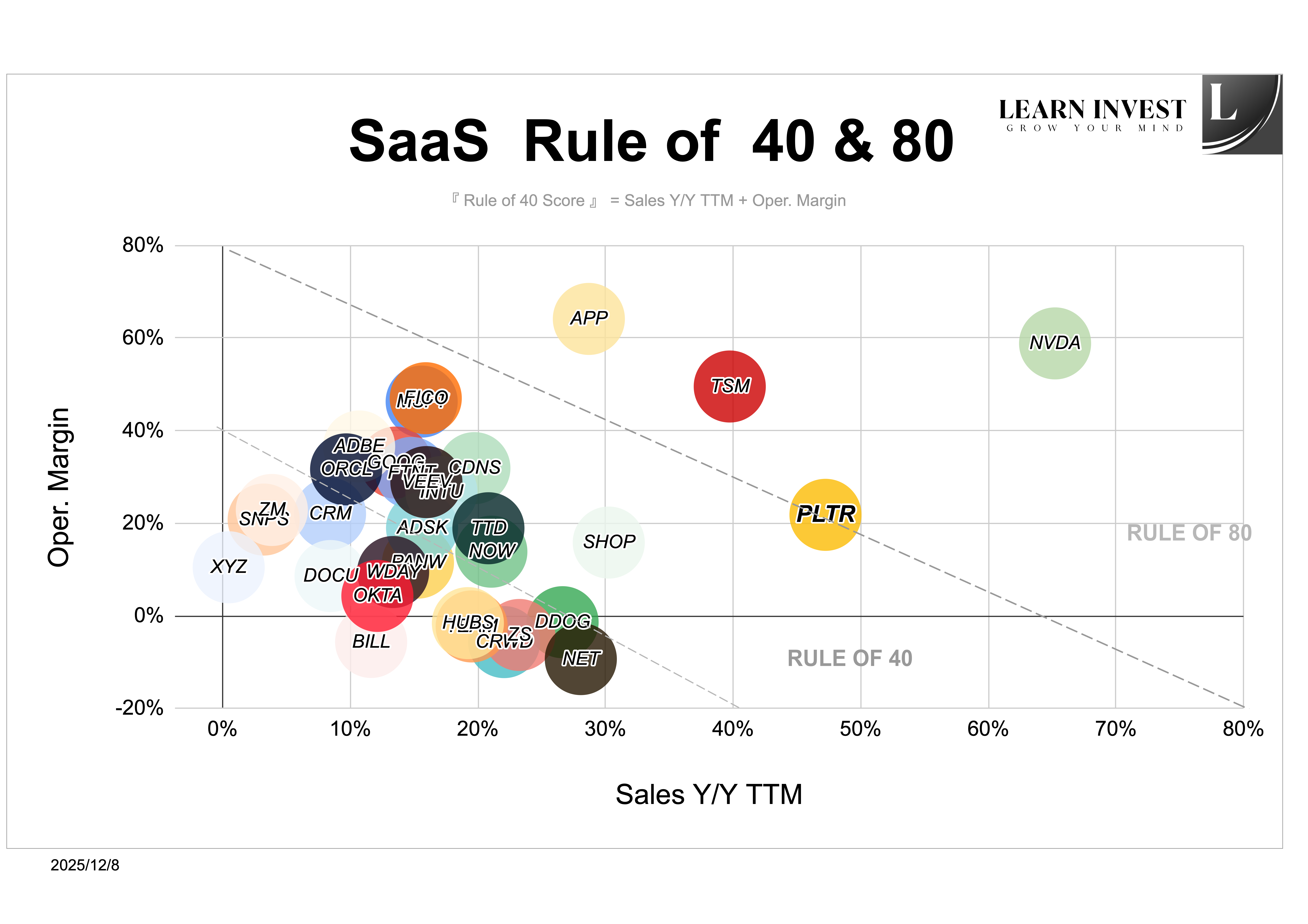 SaaS Rule of 40 可視化分析: 針對軟體股,用最直觀的散佈圖 (Scatter Plot) 幫你找出高成長且體質健康的優質公司。