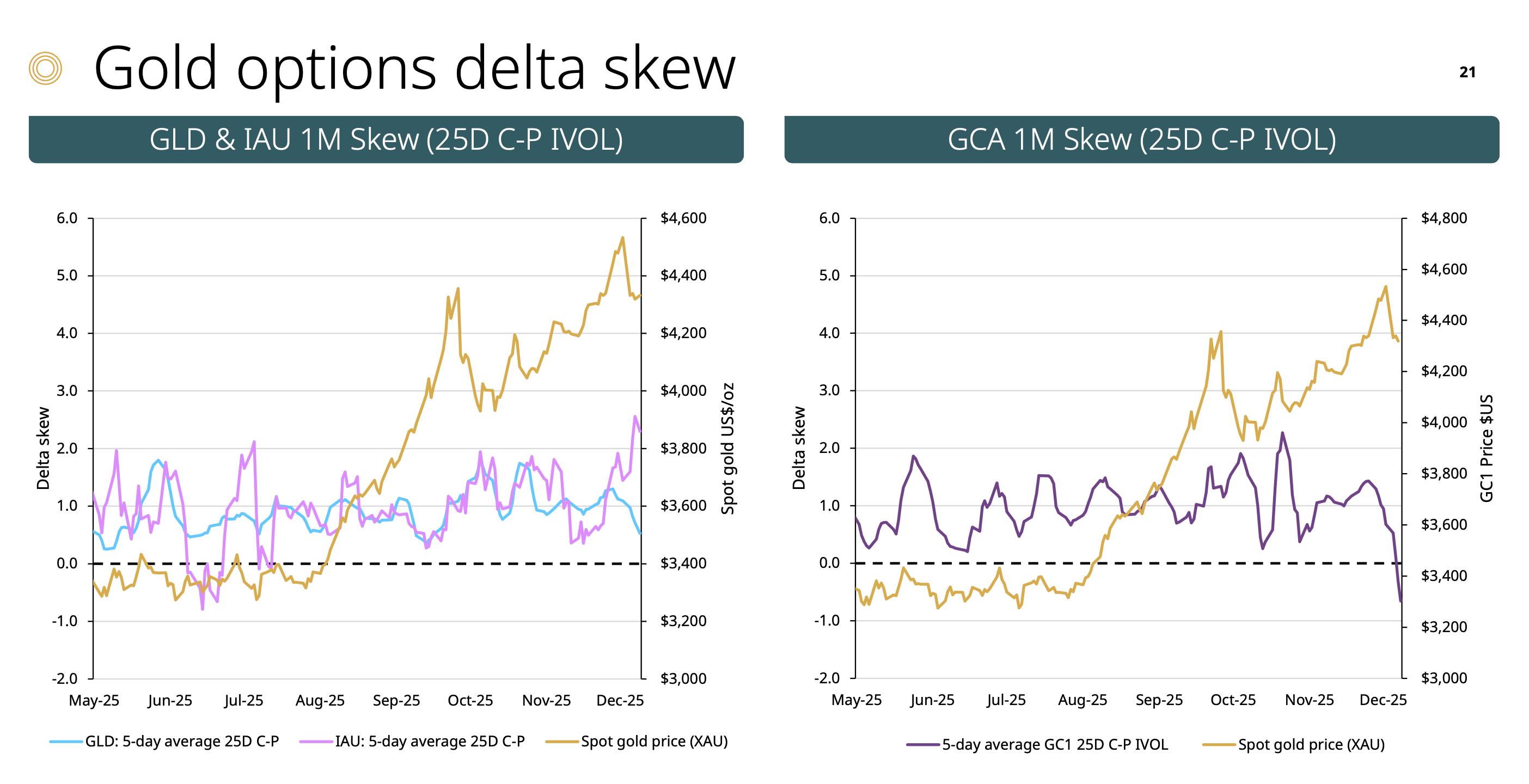 機構態度: 期貨 (GCA) 的 Call:Put 比例為 1.75:1,機構雖看多但相對溫和。這與央行購金、ETF 流入的基本面趨勢一致。