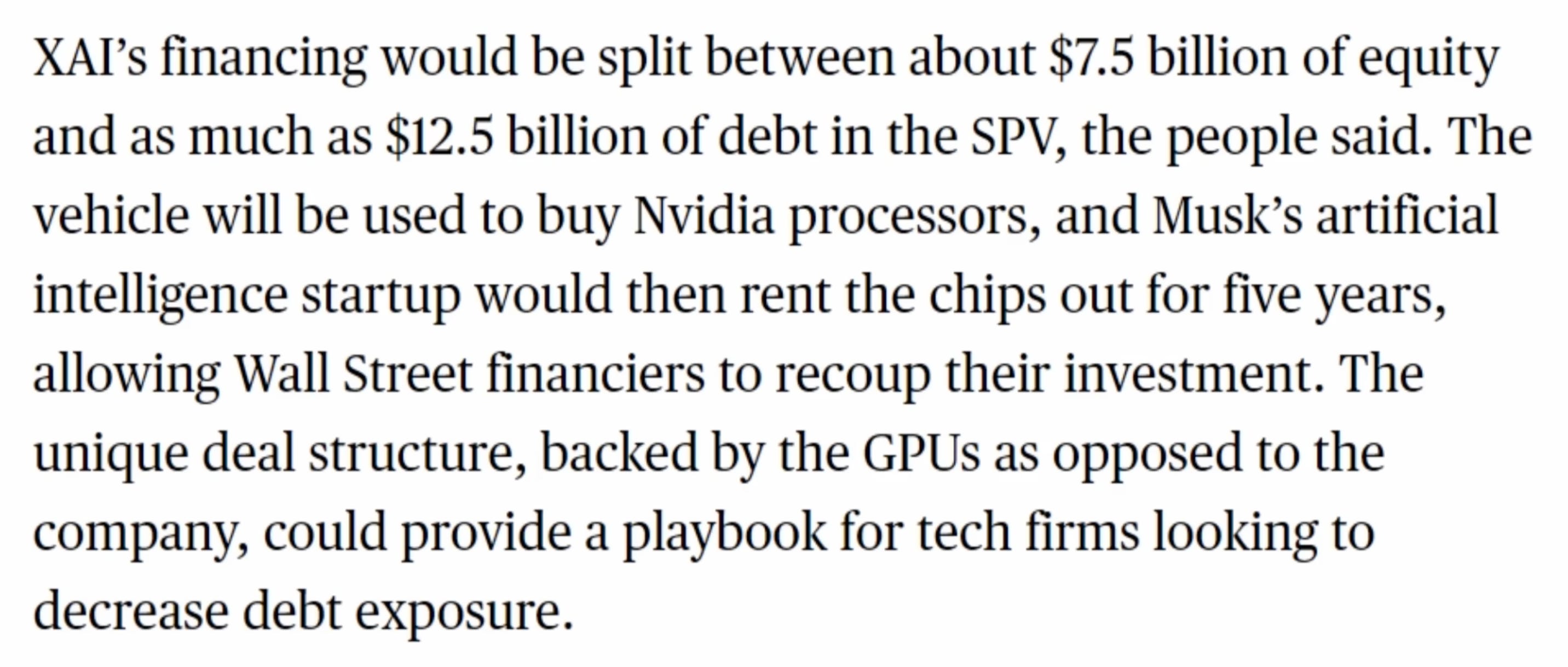 規避折舊: 龐大的 GPU 資產折舊,由 SPV 承擔,而不是 xAI 承擔。